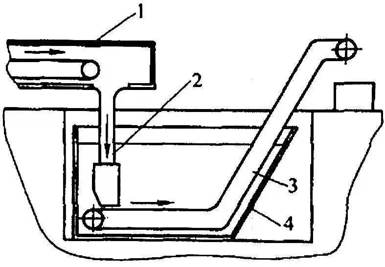 (5)確定輸送工件完成淬火工藝過程的機械裝置。對采用輸送帶傳送工件的淬火槽,要預留足夠的工件下落距離,以免熱態工件在未冷卻前與輸送帶發生磕碰。