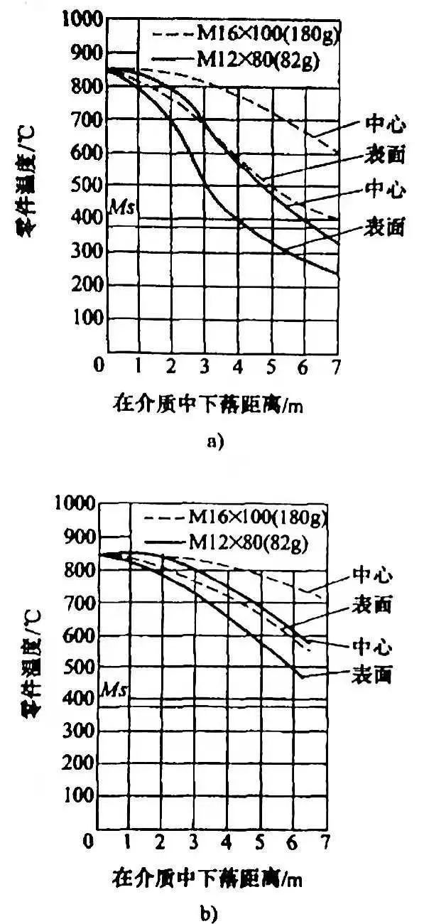 工件表面向淬火介質傳遞熱量(q)與工件表面積有關。相同重量、不同尺寸的工件,淬火冷卻從工件表面向淬火介質傳遞的熱量(q)隨時間的變化曲線會有很大不同。因此,在計算淬火介質需要量時,工件單位重量的表面積也是應該考慮的因素之一。相對淬火件表面積大的,淬火油槽的淬火重量與淬火介質的體積比參數應適當縮小,也就是將介質體積適當增大。