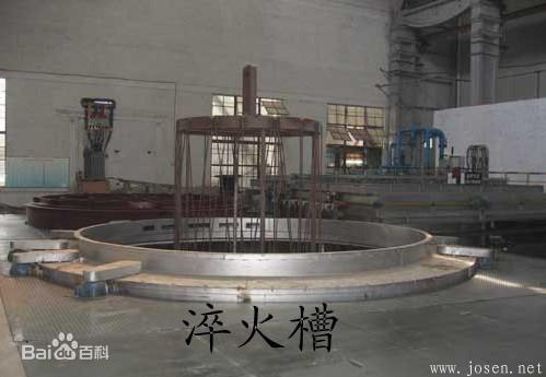 淬火槽是使用最普遍的浸液式淬火設備。用淬火槽淬火,工件直接浸入淬火介質中。介質可以是水、油、聚合物(如PAG)水溶液、鹽、堿類水溶液、熔鹽等。淬火槽要根據需要,設置攪拌裝置、除氧化皮裝置、工件傳送裝置、安全防火裝置、通風與環保裝置等。