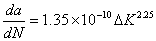 (疲勞裂紋亞臨界擴展區(qū)中特性最好)