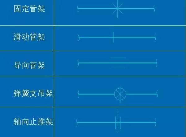 在管道布置圖中的管架符號上應(yīng)用指引線引出的長方框中注以管架代號。