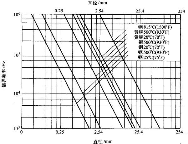 ▲圖1 幾種材料有效加熱臨界頻率與工件尺寸的關系