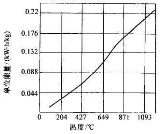 ▲圖2 工件感應透熱加熱溫度與單重所需能耗