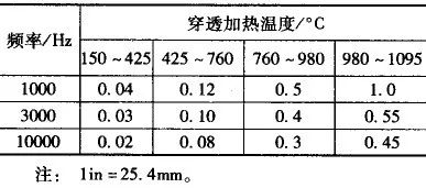 ▼表1 鋼穿透加熱所需功率密度(kW/in2)