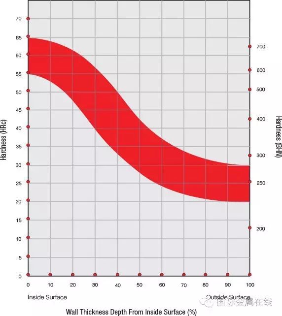 • 內表面硬度可達600布氏硬度,同時外表面兼顧一定的延展性及可加工性。