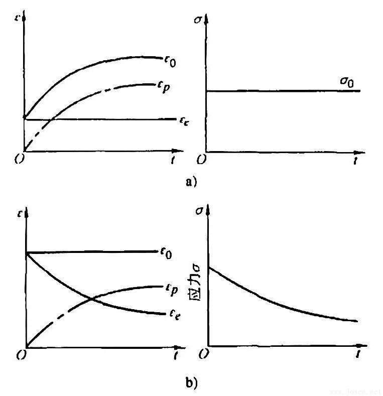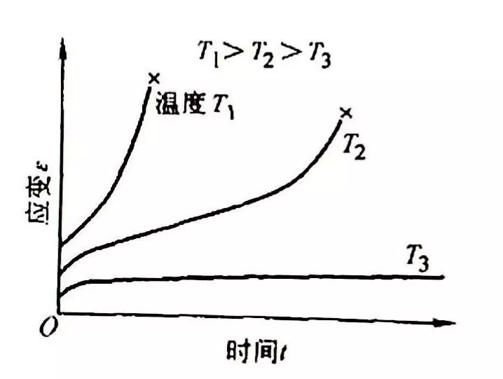 右邊一項(xiàng)是瞬時(shí)應(yīng)變,包括起始彈性形變和塑性形變(這個(gè)值隨加載方法、形變的測(cè)定方法和精度等的不同,可能帶來不同的誤差),第二項(xiàng)是減速蠕變的應(yīng)變,第三項(xiàng)是恒速蠕變引起的應(yīng)變。