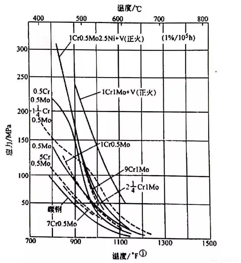 =10MPa表示在500℃下,10萬小時(shí)后,變形量為1%的蠕變極限為10MPa。