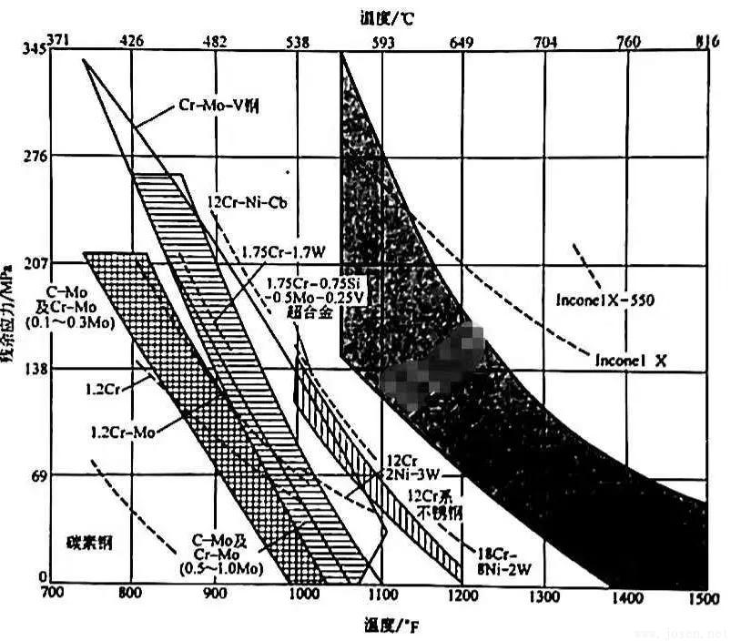 ▲圖6 各種Cr-Mo鋼的溫度-蠕變強(qiáng)度曲線