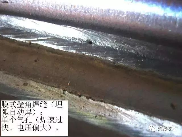 埋弧焊:焊速過快,電壓偏大。出現(xiàn)單個氣孔