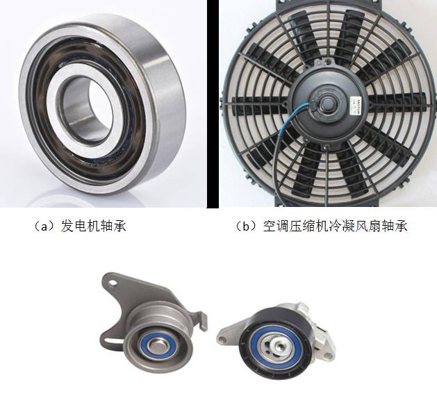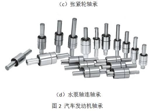 發(fā)動(dòng)機(jī)是汽車的心臟,源源不斷為其他部件提供動(dòng)力。內(nèi)部軸承先前以滑動(dòng)軸承占主導(dǎo),目前多數(shù)在改進(jìn)軸承性能的前提下,采用密封球軸承,圖2為發(fā)動(dòng)機(jī)中的幾種典型軸承。