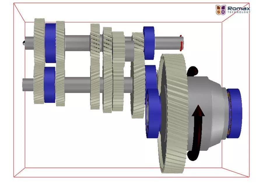 圖3為我公司MA型手動(dòng)變速箱的軸承位置示意圖(見圖中藍(lán)色標(biāo)記部分),其中在一軸一擋位為深溝球軸承25D52E15,一軸五擋位為深溝球軸承25D62E17,二軸一擋位為圓柱滾子軸承32D62E16,二軸五擋位為深溝球軸承22D57E17。