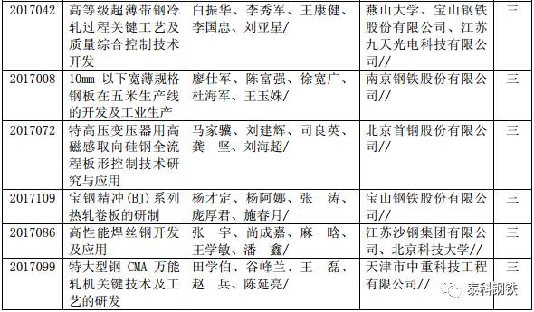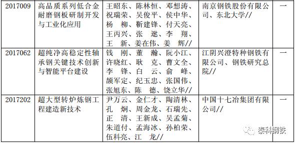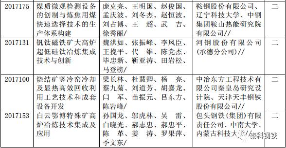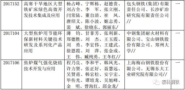 2017年冶金科學技術獎推薦獲獎項目(82 項)