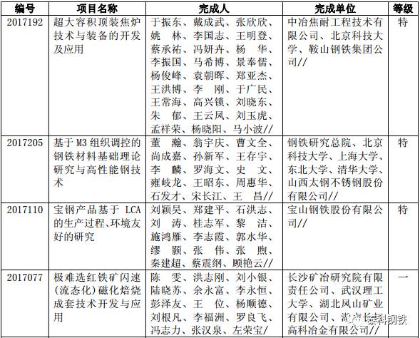 近日,冶金科學技術獎獎勵委員會辦公室公布了2017年中國鋼鐵工業協會、中國金屬學會冶金科學技術獎(簡稱冶金科學技術獎)推薦獲獎項目名單,并將獲獎項目的名稱、完成單位、完成人、推薦等級等向社會公告。根據專業評審結果,2017年共推薦獲獎項目82項,其中:特等獎3項,一等獎14項,二等獎22項,三等獎43項。冶金科學技術獎是中國冶金行業最高科學技術獎,恭喜各獲獎單位和技術大拿們,趕緊來看看都有誰獲獎了吧!