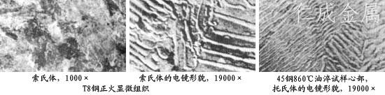 因亞共析鋼和過共析鋼的碳含量低于或高于共析成分,故亞共析鋼等溫轉變曲線,多一條先共析鐵素體析出線;過共析鋼等溫轉變曲線,多一條二次滲碳體析出線。所以亞共析鋼在珠光體型轉變區(qū)等溫時,先析出鐵素體然后發(fā)生珠光體轉變,得到鐵素體和珠光體組織;過共析鋼先析出滲碳體,然后發(fā)生珠光體轉變,得到滲碳體和珠光體組織。