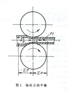 圖1示出一個機架上軸向力的平衡關系。在軋制軸線上作用有Px(垂直壓力的軸向分量)、前張力q后張力qH以及軸向摩擦Pf,而平衡條件是
