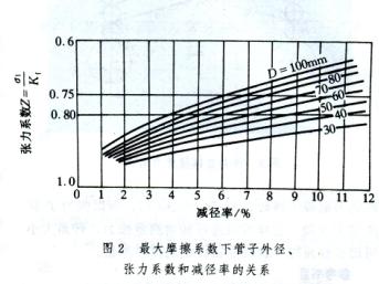 圖2給出了最大摩擦系數下管子外徑、張力系數與減徑率的關系。