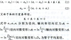 以上分析可大致給出張力對金屬流動的影響。實際上σr不等于零,因此也不能忽略。在變形區中由入口到出口,σσtσ1均在變化著,一般認為σσ由變形區入口到出口逐漸減小,這是因為σ1由變形區入口到出口是逐漸增加的。而作用在鋼管橫斷面各環層上的σr也不相同,對于薄壁管,徑向平均應力大小可用下式表示: