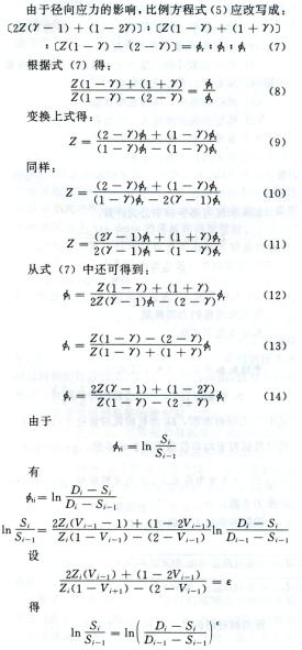 西貝爾公式從塑性變形的基本假設出發,得出在某一方向上的對數變形φ與該方向的正應力σ和平均應力σm之差成正比,得出金屬流動的基本方程式為(圖6):