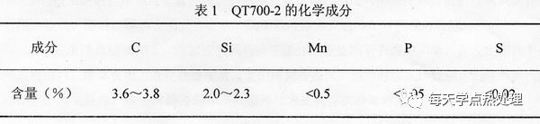 本課題所用試樣材料由石家莊吉發曲軸廠提供,QA4102球鐵曲軸所用球鐵的牌號為QT700-2。化學成分控制范圍如表1所示: