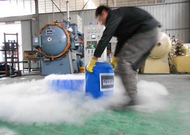 冷處理操作方法:將淬火后的鋼件,在低溫介質(如干冰、液氮)中冷卻到-60~-80度或更低,溫度均勻共同后取出均溫到室溫。