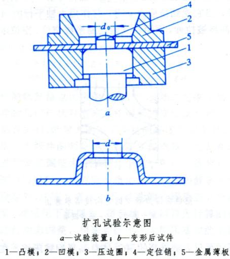 一種薄板成形性試驗。用凸模把中心帶孔的試件壓入凹模,使試件中心孔擴大,直到板孔邊緣出現頸縮或裂紋為止。試驗結果用于評價金屬薄板的翻邊成形性。被剪切或沖裁以后的金屬薄板,在受沖剪的邊緣部位會有損傷和加工硬化產生,在后續的沖壓成形加工特別是拉伸變形時,這些部位會過早地產生裂紋而導致破壞。在一些高強鋼和硬鋁合金的加工中常有這種情況發生。因翻邊是一種最典型的變形方式,為此發展了擴孑L試驗。