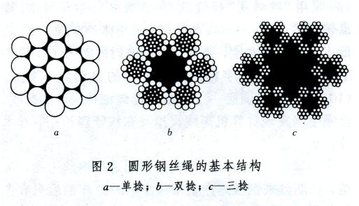 鋼絲繩按基本結(jié)構(gòu)分,有單捻,雙捻和三捻鋼絲繩(圖2)。