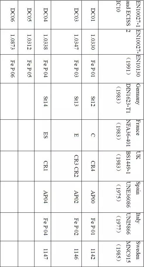 SPCC的部分近似牌號