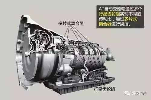 AT自動變速箱每個檔位都由一組離合片控制,從而實現(xiàn)變速功能。現(xiàn)在的AT自動變速箱采用電磁閥對離合片進行控制,使得系統(tǒng)更簡單,可靠性更好。AT自動變速箱的傳動齒輪和手動變速箱的傳動齒輪并不相同。AT自動變速箱采用的是行星齒輪組實現(xiàn)扭矩的轉換。