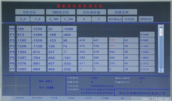 系統根據測頭1和測頭3采集的X軸方向位置值擬合一條直線,位置2的測量值與該直線的偏差即為位置2在X軸方向的直線度誤差。