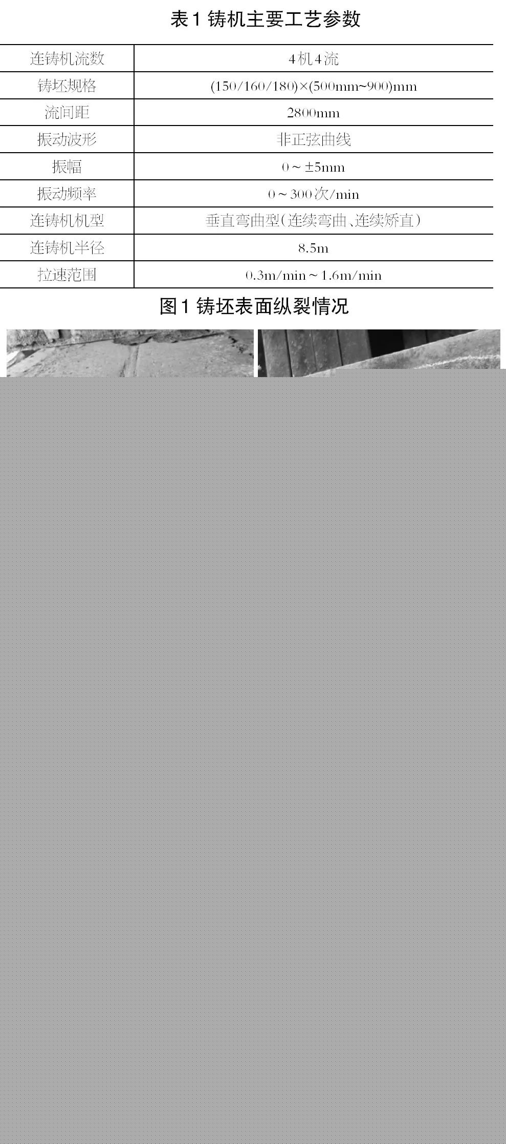 作為上游工序的板坯連鑄,能否生產(chǎn)出高質(zhì)量的鑄坯,是該生產(chǎn)線能否成功投入的先決條件,產(chǎn)品主要以Q235、Q195等鋼種為主,Q235是典型的包晶鋼,在投產(chǎn)之初板坯表面出現(xiàn)嚴(yán)重縱裂,在有意避開包晶敏感區(qū)之后,此類裂紋依然存在,說明裂紋的產(chǎn)生不僅僅是包晶反應(yīng)的影響,還有其他重要的影響因素存在,三寶鋼鐵針對可能的影響因素逐個改善,最終將縱裂問題徹底解決。板坯連鑄的連鑄機主要工藝參數(shù)如表1所示。