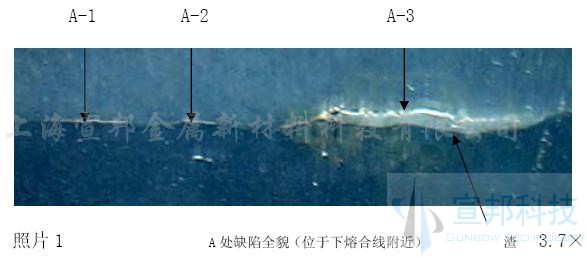 照片3 缺陷1全貌(位于下熔合線附近) ~6.5×