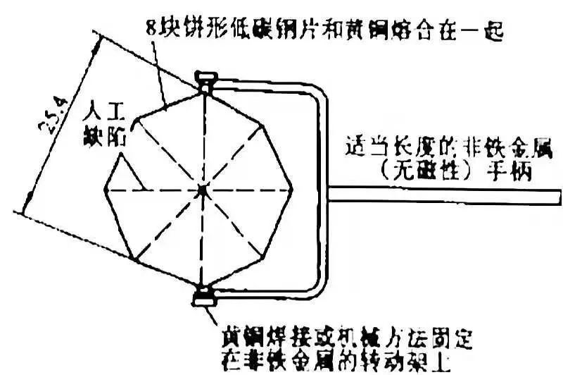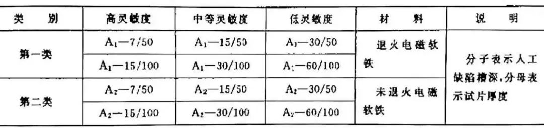 有關檢測標準都對被檢物檢測靈敏度提出了明確要求,實際檢測中采用靈敏度標準試片或試塊校準,或驗證被檢物檢測靈敏度,靈敏度試片(塊)還用于大致確定磁化電流值,用于考察被檢物各處磁場分布規律等。
