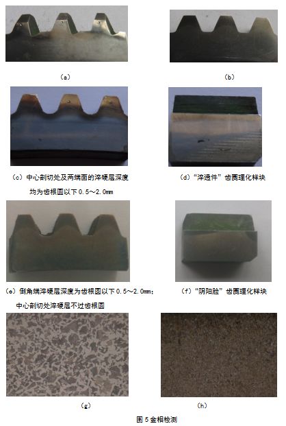 根據齒圈的實際使用情況,與起動機齒輪嚙合時的進入端受沖擊力較大,工作頻次大,即齒圈的倒角端與齒圈的非倒角端面承受不同的載荷,對齒圈兩端面的淬硬層深度要求不同,硬度也不相同,并且為了保證齒的使用壽命,且淬硬層不能過齒根圓,這就是所謂的“陰陽臉”。在實際加工過程中雖然由于某些因素會導致“陰陽臉”的產生,但是這些“陰陽臉”屬于熱處理缺陷,無法精確控制。