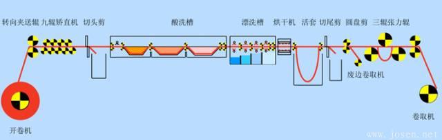 連續式酸洗是一種高產優質,發展較快的酸洗方法,它是通過在機組上設置焊機和活套裝置,使工藝段在換卷時不停機,保證機組連續運行,但機組長,設備復雜,投資較高。連續式酸洗線主要有兩種形式,分別是連續臥式酸洗機組和連續塔式酸洗機組。