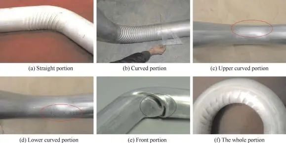 這種一側發生管道褶皺,往往都是發生在折角彎管或彎管附近直管上面,直線管道熱脹推壓彎管,彎管發生彎曲變形,由于直管推壓導致大彎曲應力作用,弧段發生失穩,就會進入塑性變形,產生一側褶皺變形。