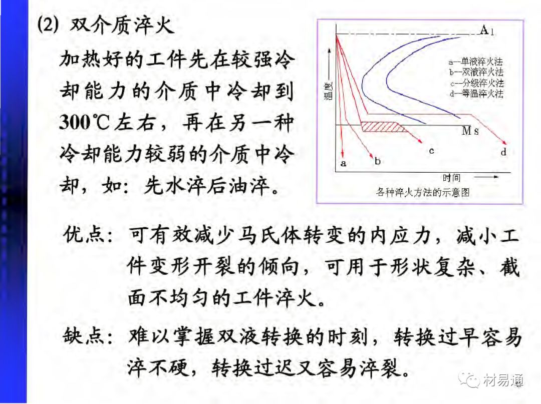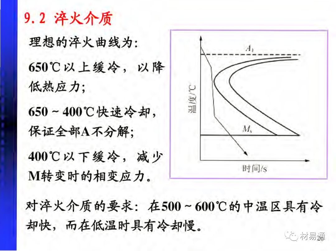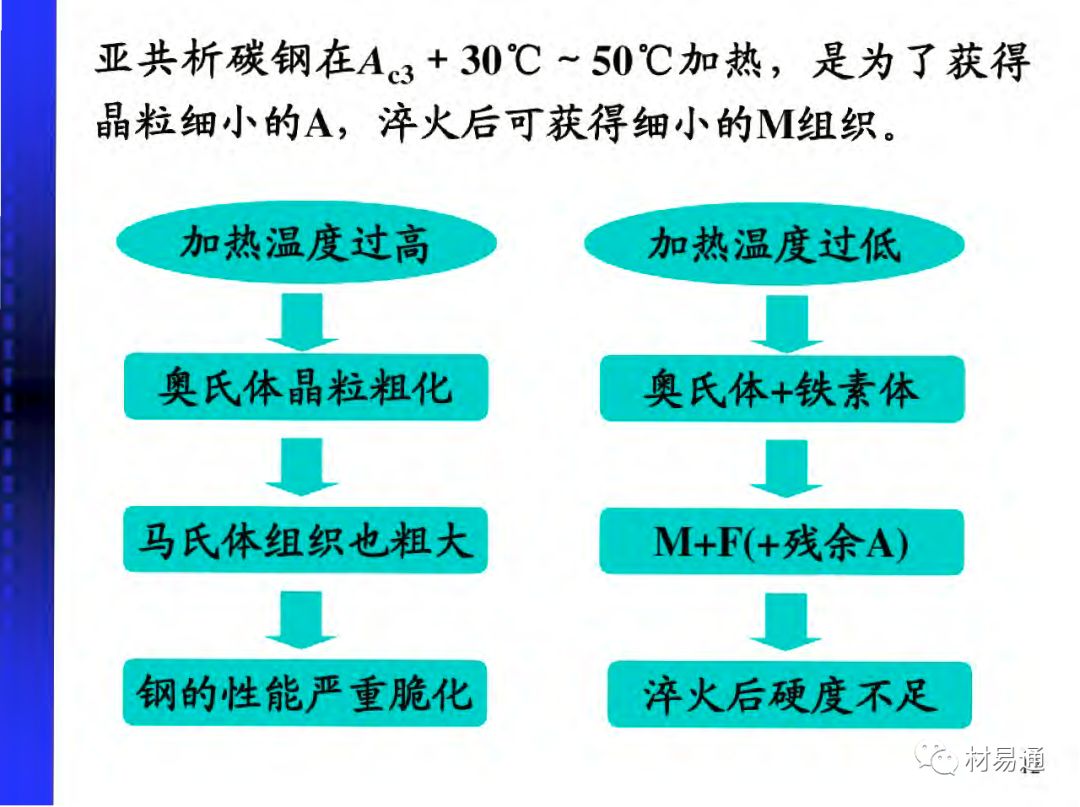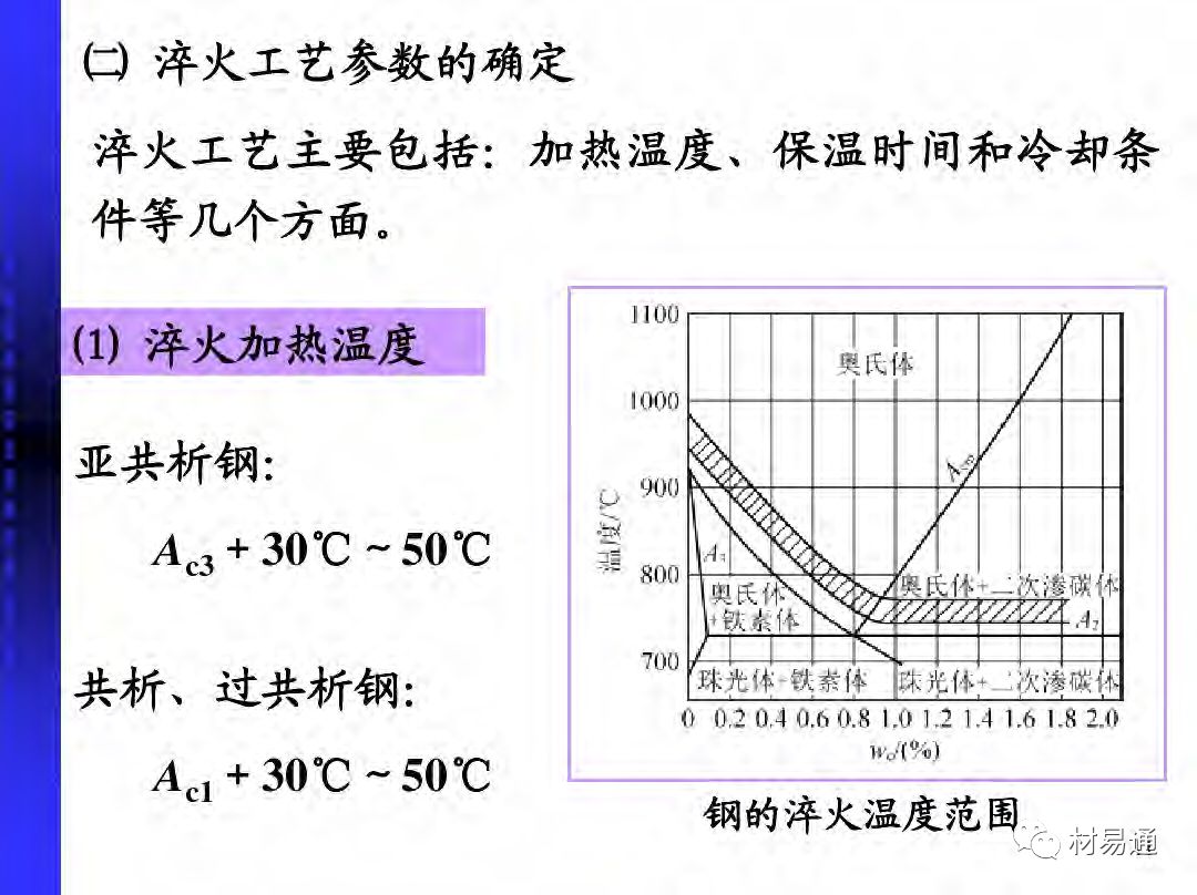 將鋼加熱到Ac3(亞共析鋼)或Ac1(過共析鋼)以上(30~50)℃某一溫度,保持一定時(shí)間,然后在水或油中快速冷卻的操作工藝稱為淬火。