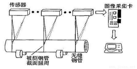 該方法具有大量程、非接觸、測量速度快、系統柔性好、精度適中等特點特別適合于產品的幾何參數檢測與質量監控領域。但也有其不足之處基于視覺分析技術對周圍環境有較高要求由于鋼管和光截面相交線很窄測量結果的穩定性不足為了提高精度必須使用多個發射/接收裝置進行分析成本較高。