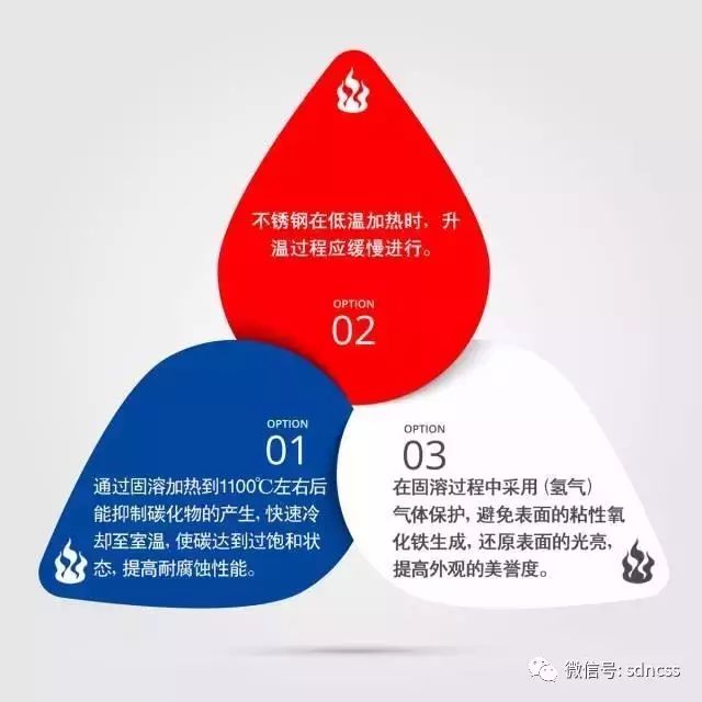 2、奧氏體不銹鋼通過固溶加熱到1100℃左右后,能抑制碳化物的產生,然后快速冷卻至室溫,使碳達到過飽和狀態,可大幅度提高不銹鋼耐腐蝕性能。