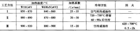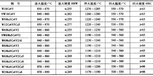 各國高速鋼根據牌號和化學成分不同都有其相應的熱處理規范。以下為一些熱處理工藝參數舉例。