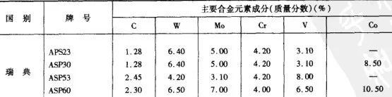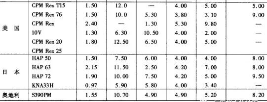 目前粉末高速鋼的生產廠家主要在瑞典、美國、日本、奧地利等國。其生產的粉末高速鋼牌號和化學成分如表7所示。