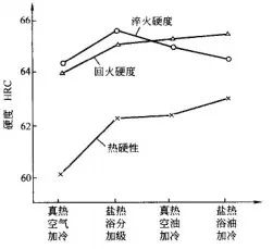 從高速鋼制工具的使用壽命角度看,高速鋼淬火冷卻時最好是出爐立即浸入冷卻介質,中間停留會引起碳化物析出,從而損害耐磨性和熱硬性。