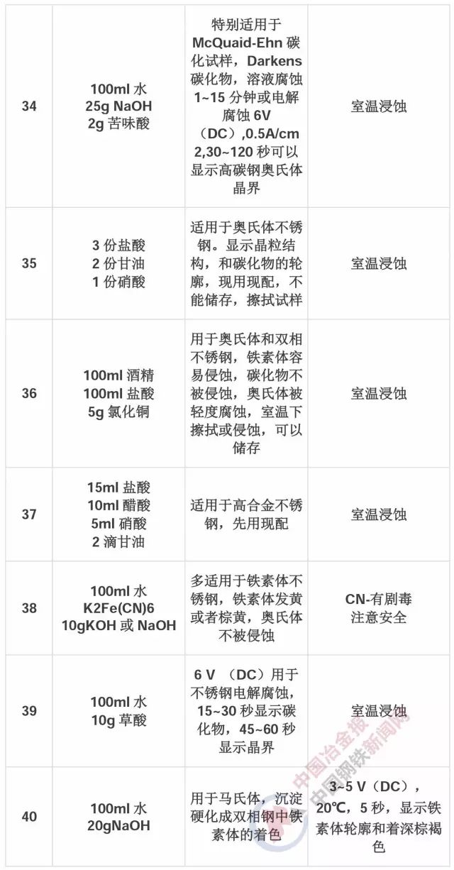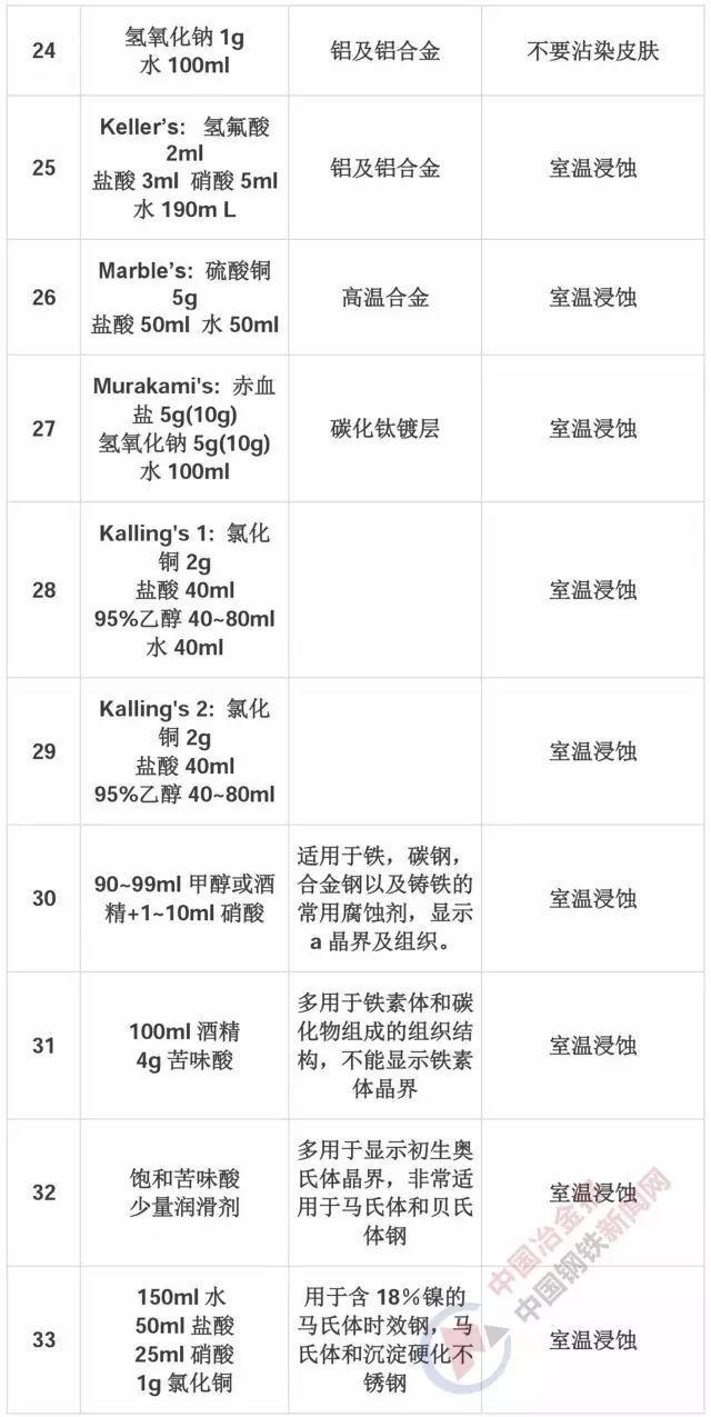 這里,我們就將常見的侵蝕劑及其適用對象與方法簡單列在下表中。