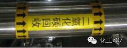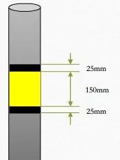 方法:在管道上涂150mm寬黃色,在黃色兩側(cè)各涂25mm寬黑色色環(huán)或色帶。