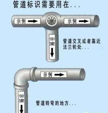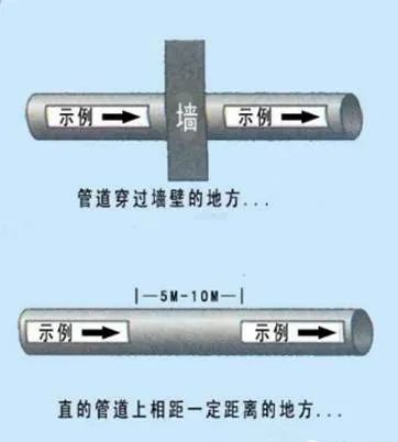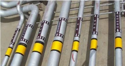 在鋼管管道上以帶箭頭的長方形識別色標牌標識;