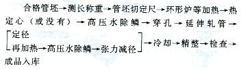 生產(chǎn)熱軋無縫管的機(jī)組,根據(jù)穿孔、延伸和精軋3個(gè)基本工序中使用的生產(chǎn)方法和設(shè)備的不同,可以有各種不同。不同的機(jī)組均以將毛管展軋延伸成荒管的軋機(jī)來命名。例如,有自動(dòng)軋管機(jī)的稱自動(dòng)軋管機(jī)組,有連續(xù)軋管機(jī)的稱連續(xù)軋管機(jī)組,在三輥(或二輥)斜軋延伸機(jī)上展軋毛管的稱三輥(或二輥)軋管機(jī)組,用周期式軋管機(jī)軋管的稱周期式軋管機(jī)組,用CPE頂管機(jī)頂管的稱CPE頂管機(jī)組。在這些機(jī)組上熱軋無縫管的工藝流程分別如圖1~圖5所示。