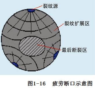 疲勞斷裂首先是在零件的應(yīng)力集中局部區(qū)域產(chǎn)生,先形成微小的裂紋核心,即微裂源。隨后在循環(huán)應(yīng)力作用下,微小裂紋繼續(xù)擴(kuò)展長大。由于微小裂紋不斷擴(kuò)展,使零件的有效工作面逐漸減小,因此,零件所受應(yīng)力不斷增加,當(dāng)應(yīng)力超過金屬材料的斷裂強(qiáng)度時,則突然發(fā)生疲勞斷裂,形成最后斷裂區(qū)。金屬疲勞斷裂的斷口由微裂源、擴(kuò)展區(qū)和瞬斷區(qū)組成。