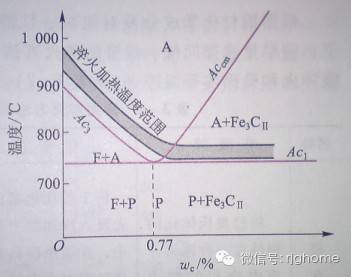 不同的鋼種其淬火加熱溫度不同。非合金鋼的淬火加熱溫度可由鐵碳合金相圖確定,如圖 03所示。