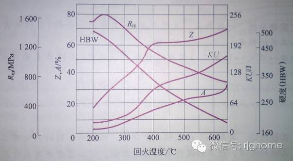 回火的主要目的是減小或消除淬火殘余應力,穩定鋼件的組織和尺寸,并與淬火配合,使零件達到使用性能要求。由圖 06可以看出,淬火鋼材隨回火溫度的升高,強度與硬度降低,而塑性與韌性提高。