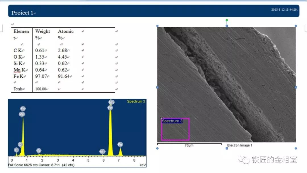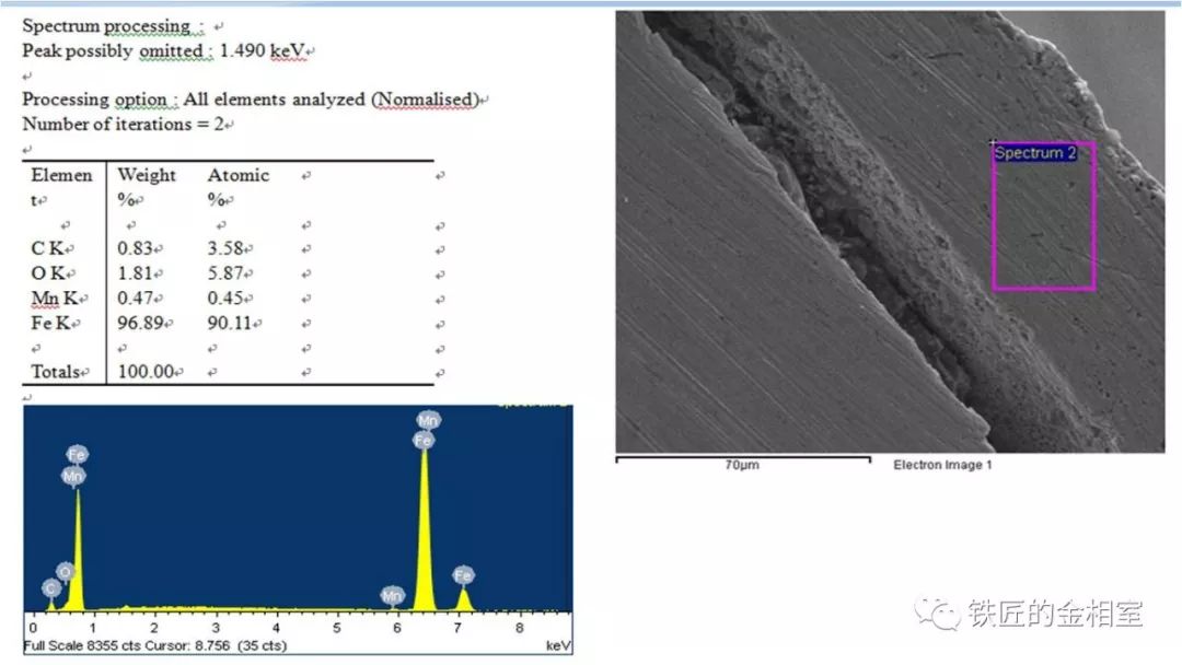 “想不明白啊,沒關(guān)系,你拿上這個樣去找大何,電鏡下做個EDS,分析一下這個皮和里面的組織在成分上有什么差異。”