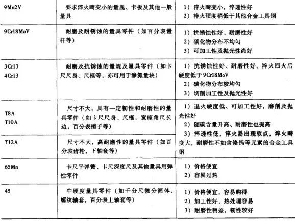 以上各項要求應根據(jù)各種量具的不同特點、精度等級、制造方法和單件或批量生產(chǎn)等因素綜合考慮,其他如淬透性、強度、熱脹系數(shù)等。根據(jù)產(chǎn)品性能要求加以考慮。